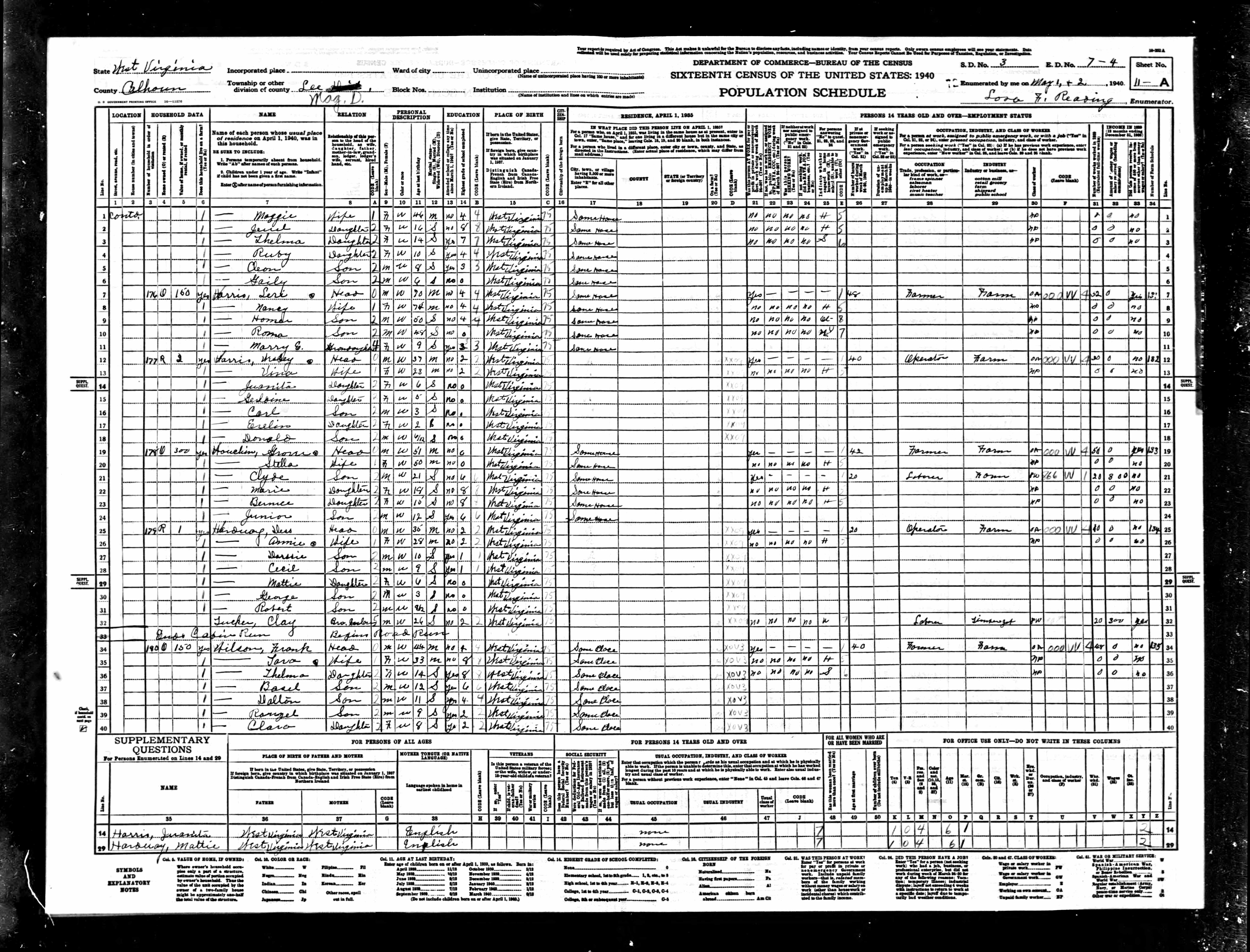 Picture: 1940 Census Frank Wilson, Lee, Calhoun County, West Virginia, 11-A