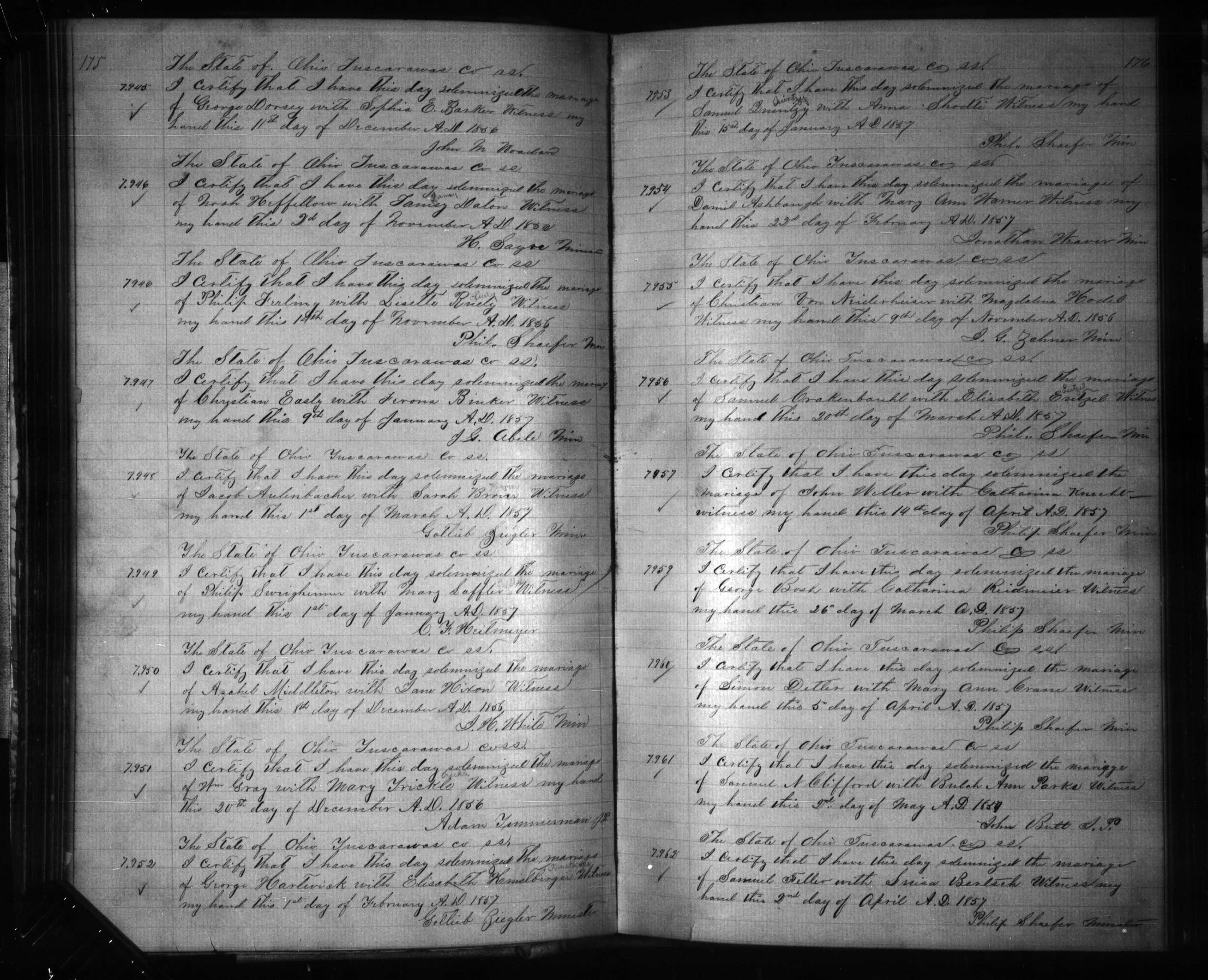 Marriage – 1857, Jacob Aulenbacher and Sarah Broyler , Tuscarawas County, Ohio