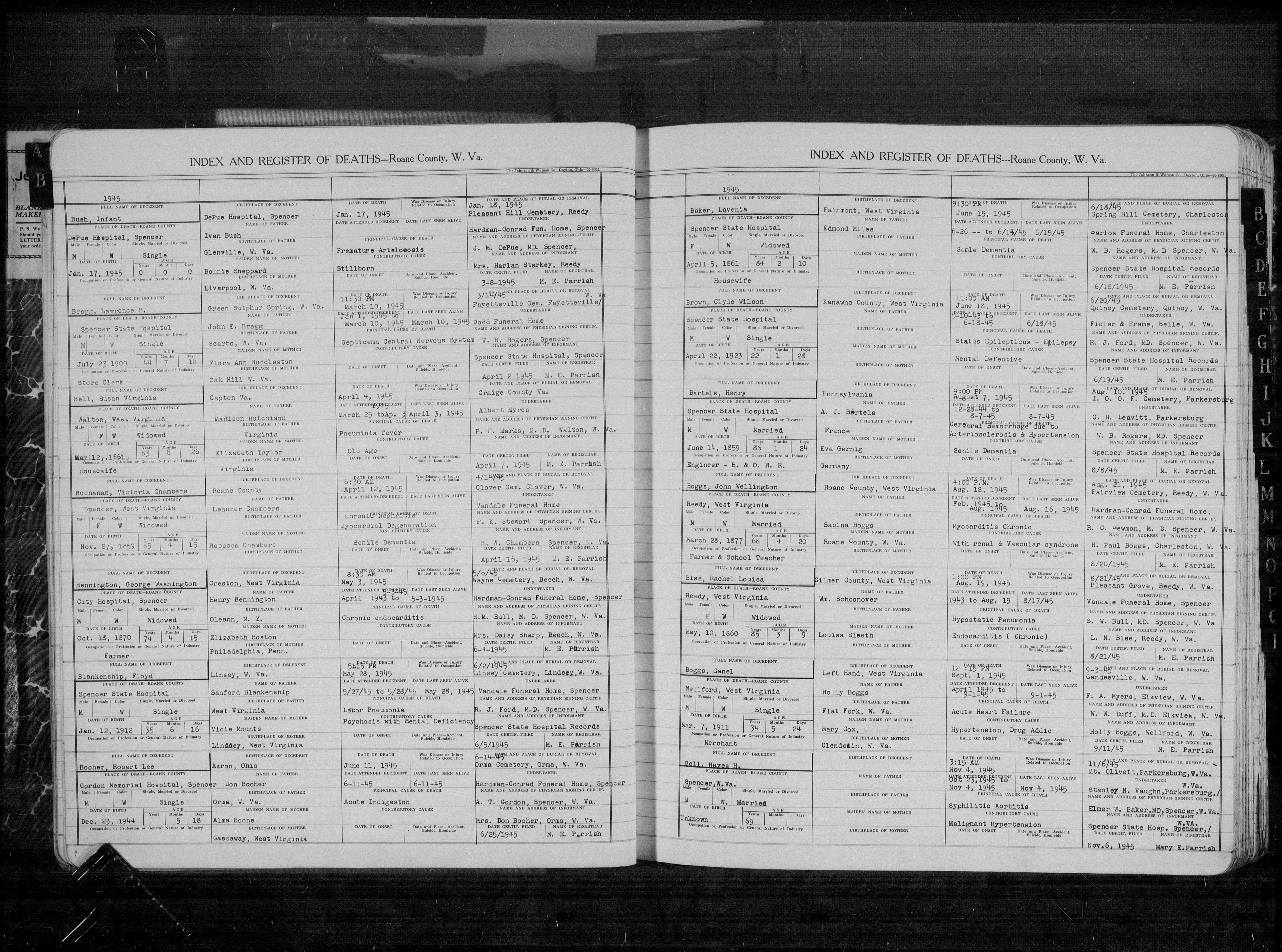 Death – 1945, Index and Register of Death, Roane County, West Virginia, Bush-Bell