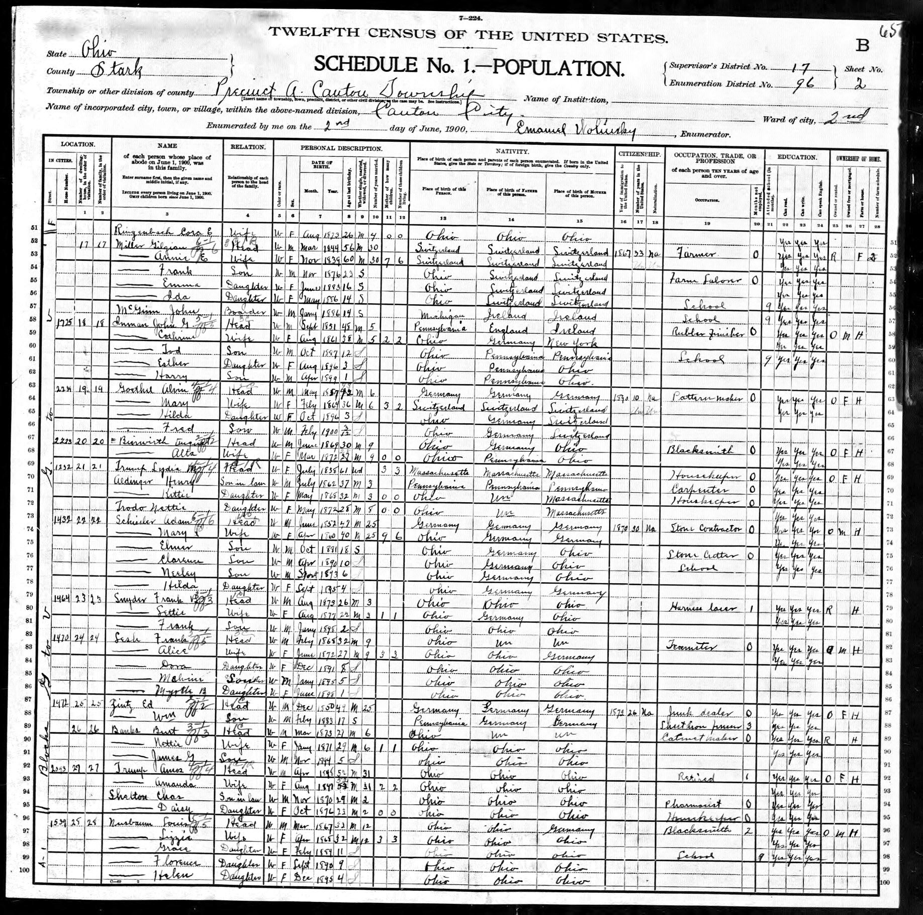 1900 US census, Gilgian Miller Family, Canton, Stark County, Ohio