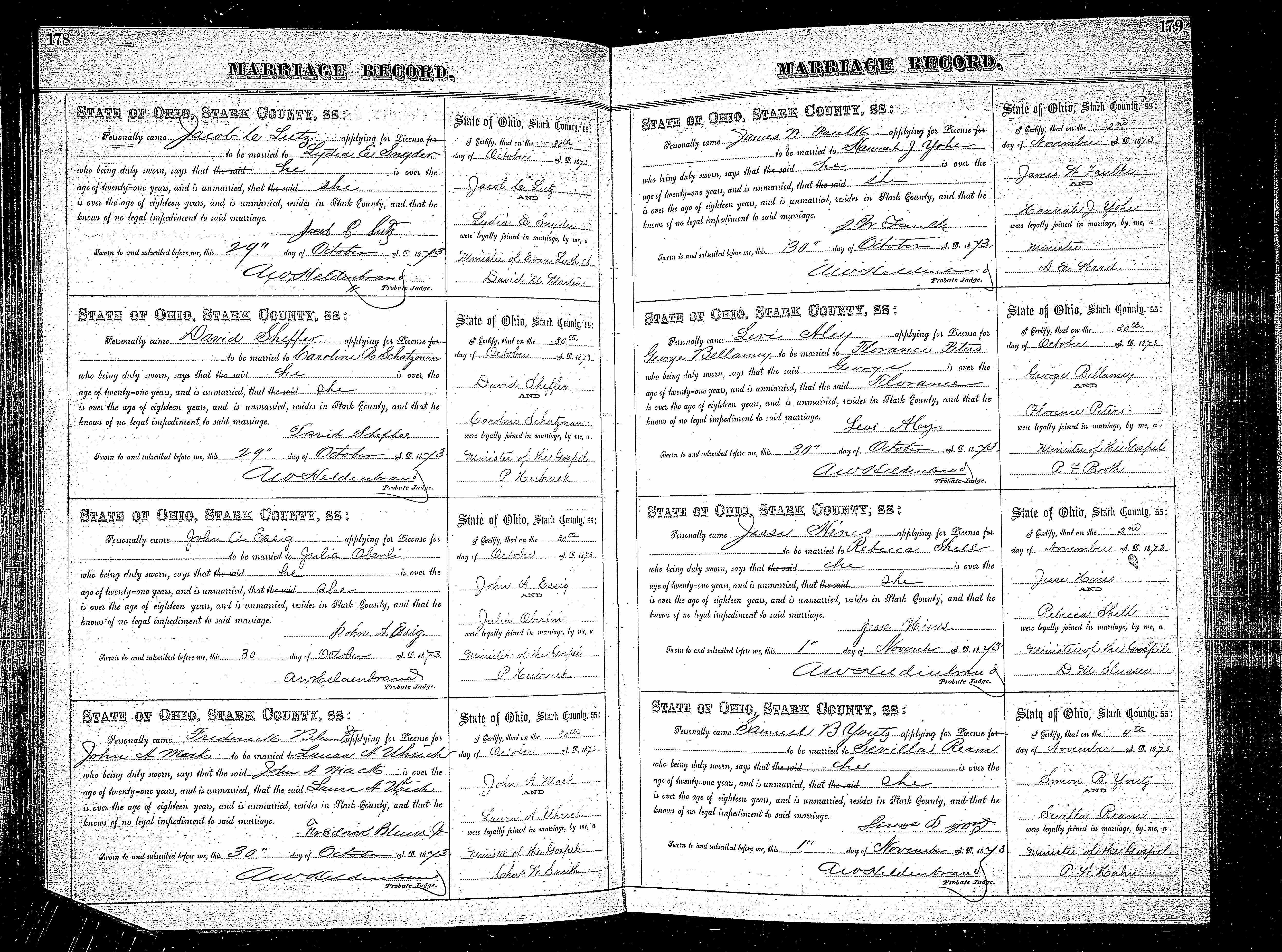 Ohio, County Marriages, 1790-1950 for Jacob C. Lutz name: Jacob C. Lutz titles & terms: event: Marriage event date: 30 Oct 1873 event place: Stark County, Ohio age: 21 estimated birth year: 1852 marriage date note: marriage place note: father: father's titles & terms: mother: mother's titles & terms: spouse: Lydia E. Snyder spouse's titles & terms: spouse's age: 19 spouse's estimated birth year: 1854 spouse's father: spouse's father's titles & terms: spouse's mother: spouse's mother's titles & terms: reference number: p 178 it 1 film number: 897631 digital folder number: 4258070 image number: 124 |