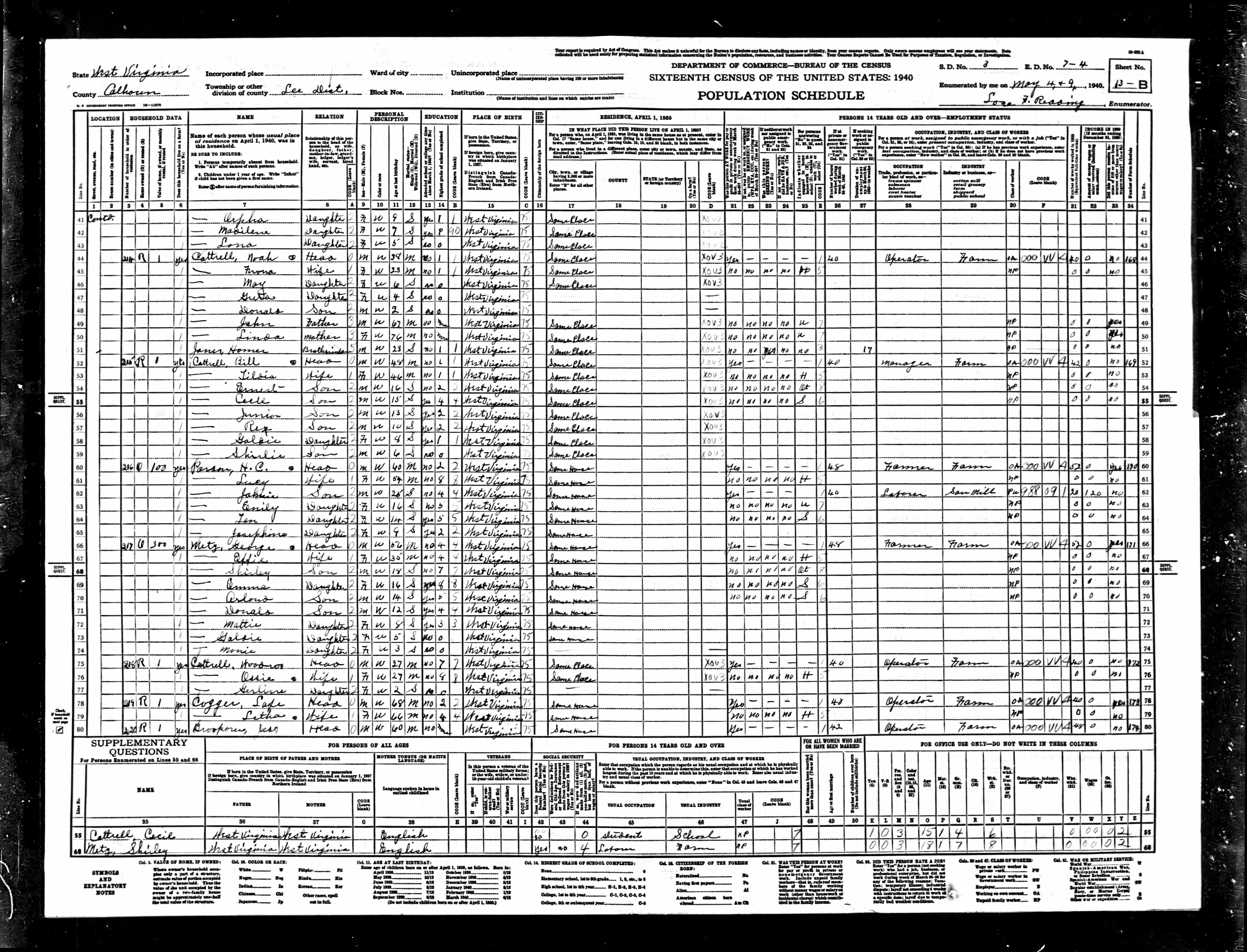 Picture: 1940 US census, Jesse Brookover Family, Lee, Calhoun County, West Virginia, 13-B