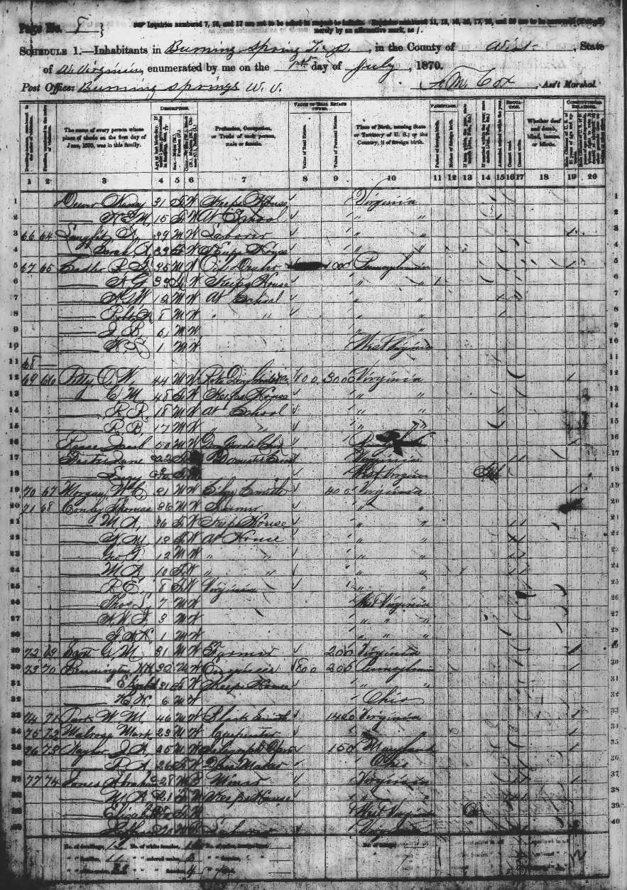 1870 US census, Burning Springs Township, Wirt County, West Virginia, 243b