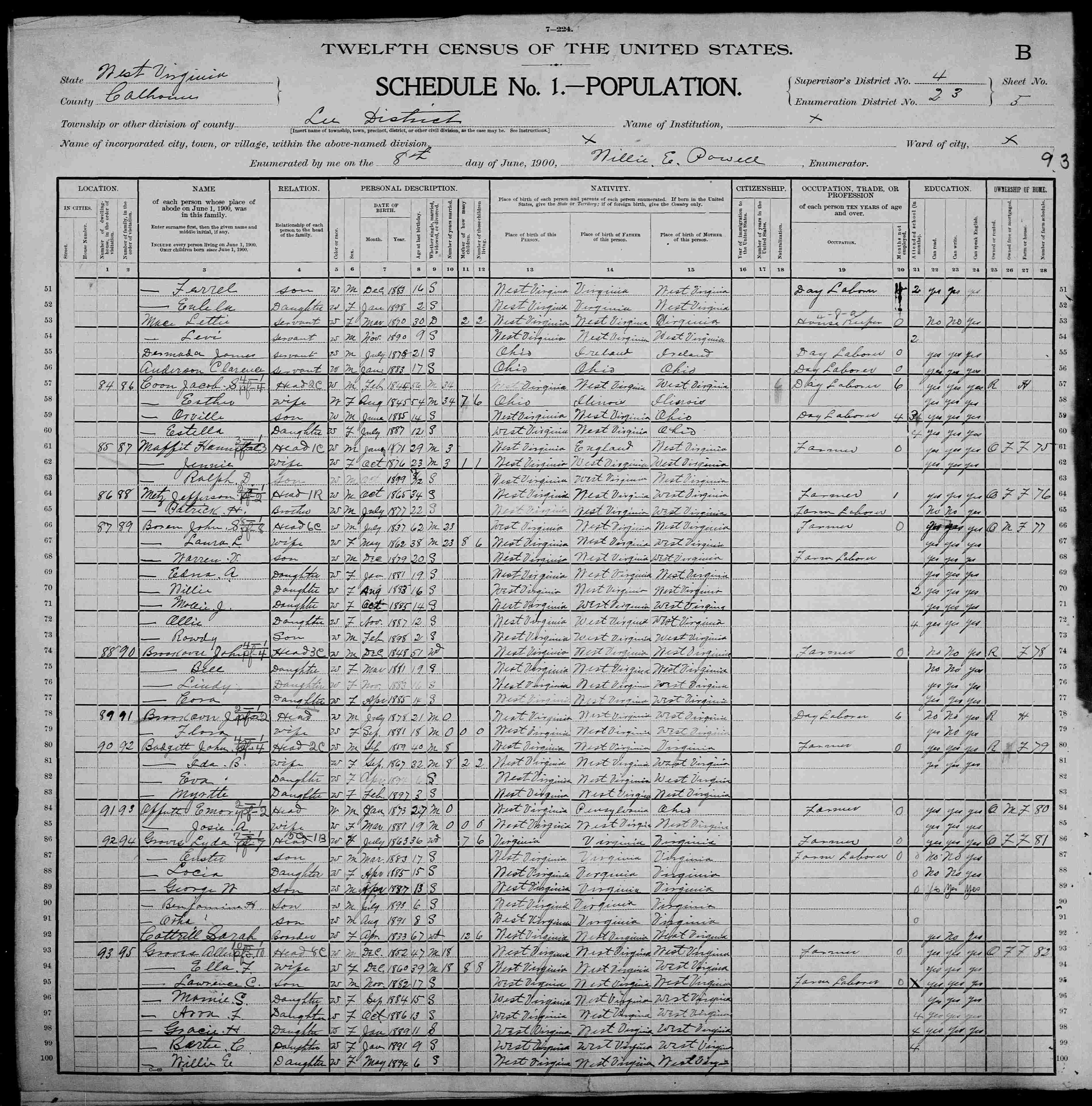 Picture: 1900 US Census West Virginia Calhoun Lee District